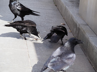 思い思いのポーズをとっているカラスのみなさんです。かわいいですね。