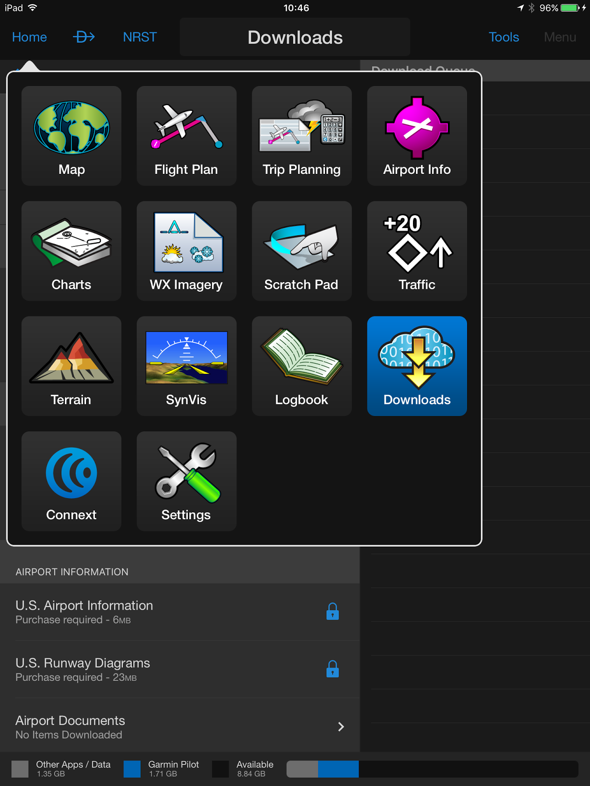 Garmin Pilotを起動したらまず最初に地図データのダウンロードをしたほうがいいです。元の地図だといまいちな感じで情報も少なくがっかりします。