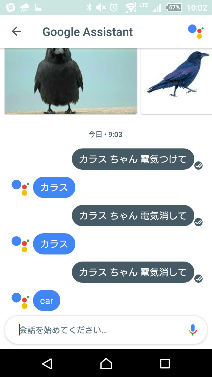 Ok Goolge, カラスちゃん電気つけて と言うだけで電気がつくようになりました。