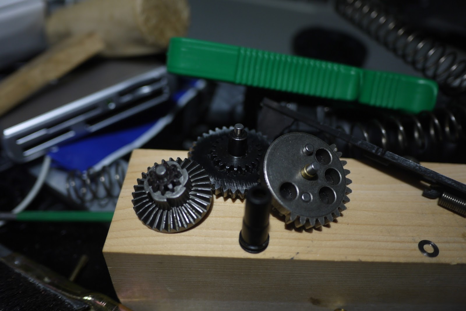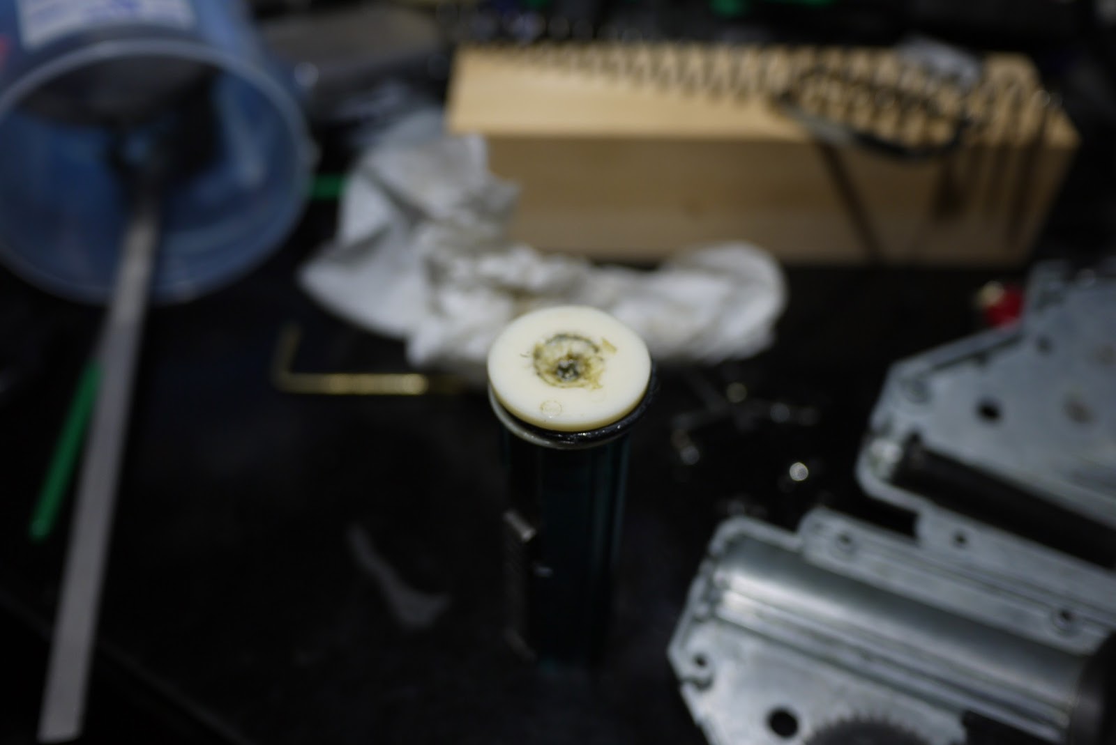 ここで樹脂製のピストンを使っていれば金属のギアが削れることは無かったはずです。