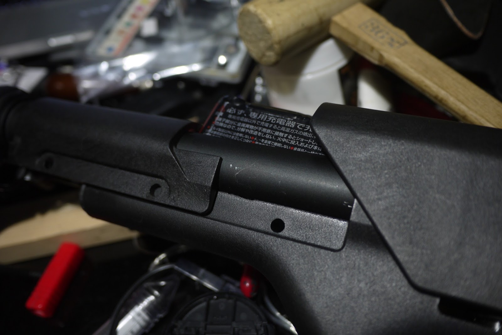 昨日お伝えしたMAGPUL PTS の PRSストック のmini-sバッテリー内蔵加工、なんとかバッテリーが入るようになったので写真を載せます。